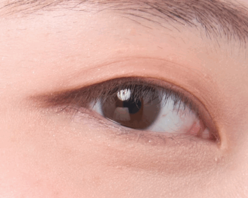 最後に、目尻の上下にのせ、横幅を広げるように塗ります。範囲は小さくても、目尻を強調するだけで目が大きく見える効果大。そして目のカーブを延長するようにアイラインをペンシルで入れぼかします。ただし、ブラックのリキッドアイラインで囲みすぎるのは目が小さくみえてしまう逆効果なので注意してくださいね。