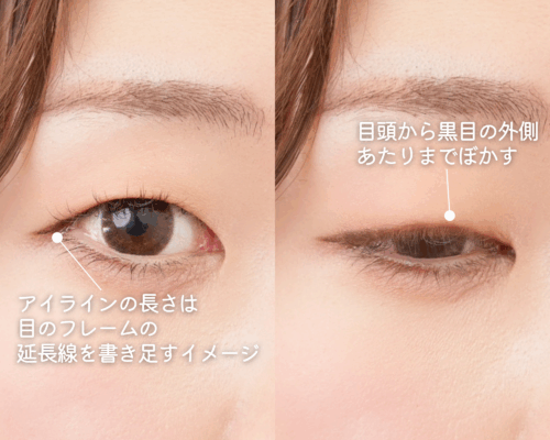 正面からは細く見えるラインでも、伏し目になった瞬間に太いラインがバレてしまいます。これはとっても不自然です!また、線がくっきり出てしまうリキッドタイプも相性はよくありません。