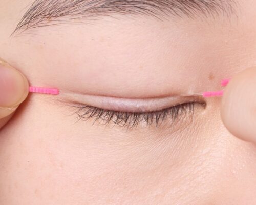 まずは、ファイバータイプの二重コスメで目の縦幅を意識したラインを作ってみましょう。
