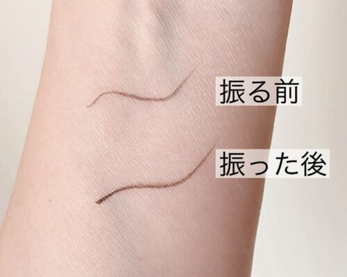 リキッドタイプのアイライナーを使っている場合、意外と見落としがちなのが「使用前に振ること」です。中の液がしっかり混ざっていないと、色が薄く出たり、ラインがかすれたりすることがあります。描く前に数回軽く振ってから使うだけで、発色や描き心地が安定しやすくなりますよ。
