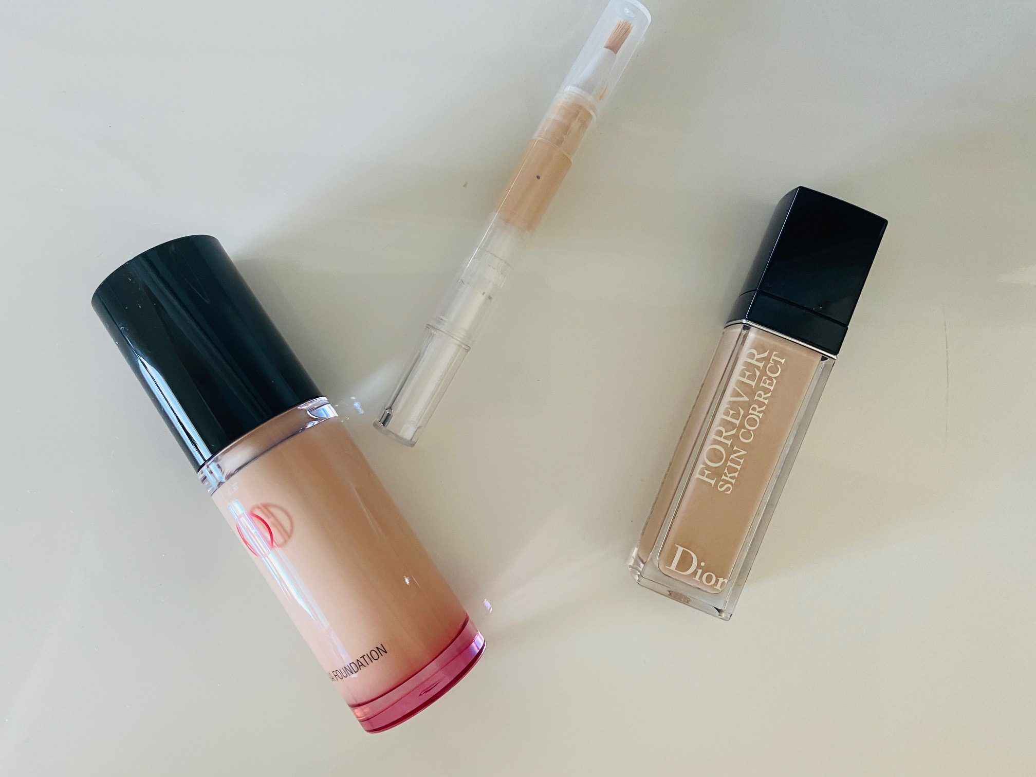 目元や口元に使うコンシーラは潤いがあり少量でもカバーしてくれるアイテムを。ファンデーションは潤い重視のリキッドタイプでカバーしつつ、潤いのある肌感をだすとキレイに見えます。