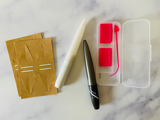 シートから水色のカバーを外してガイドを取り出し、作りたい二重ラインのところにガイドを押し当てるだけ。テクニック要らずで、簡単にはっきりとした二重が出来ました。
