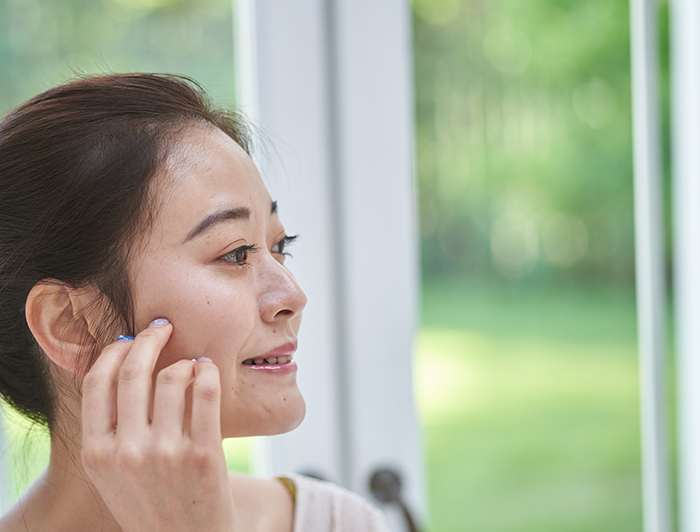 肌が敏感になる時期は、肌トラブルが起きる原因を出来るだけ取り除き刺激を与えないようなスキンケアが大切です。また、人間の約60%が水分でできていると言われているので、水分補給をこまめにして体の内側からも潤いをキープして。